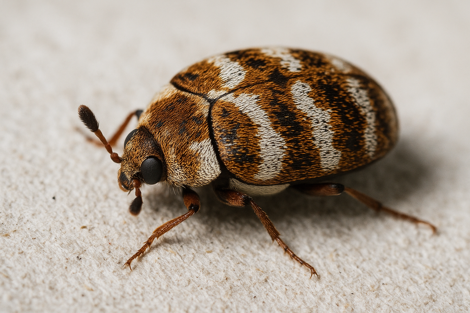 「家の中に小さな虫が何匹も…」「カーペットの隅で見つけた謎の幼虫…」 それ、もしかしたら“カツオブシムシ”かもしれません。