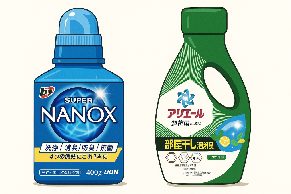 中でも「ナノックス(LION)」と「アリエール(P&G)」は、どちらも人気が高く、ドラッグストアや通販サイトでも常に上位にランクインする定番アイテム。