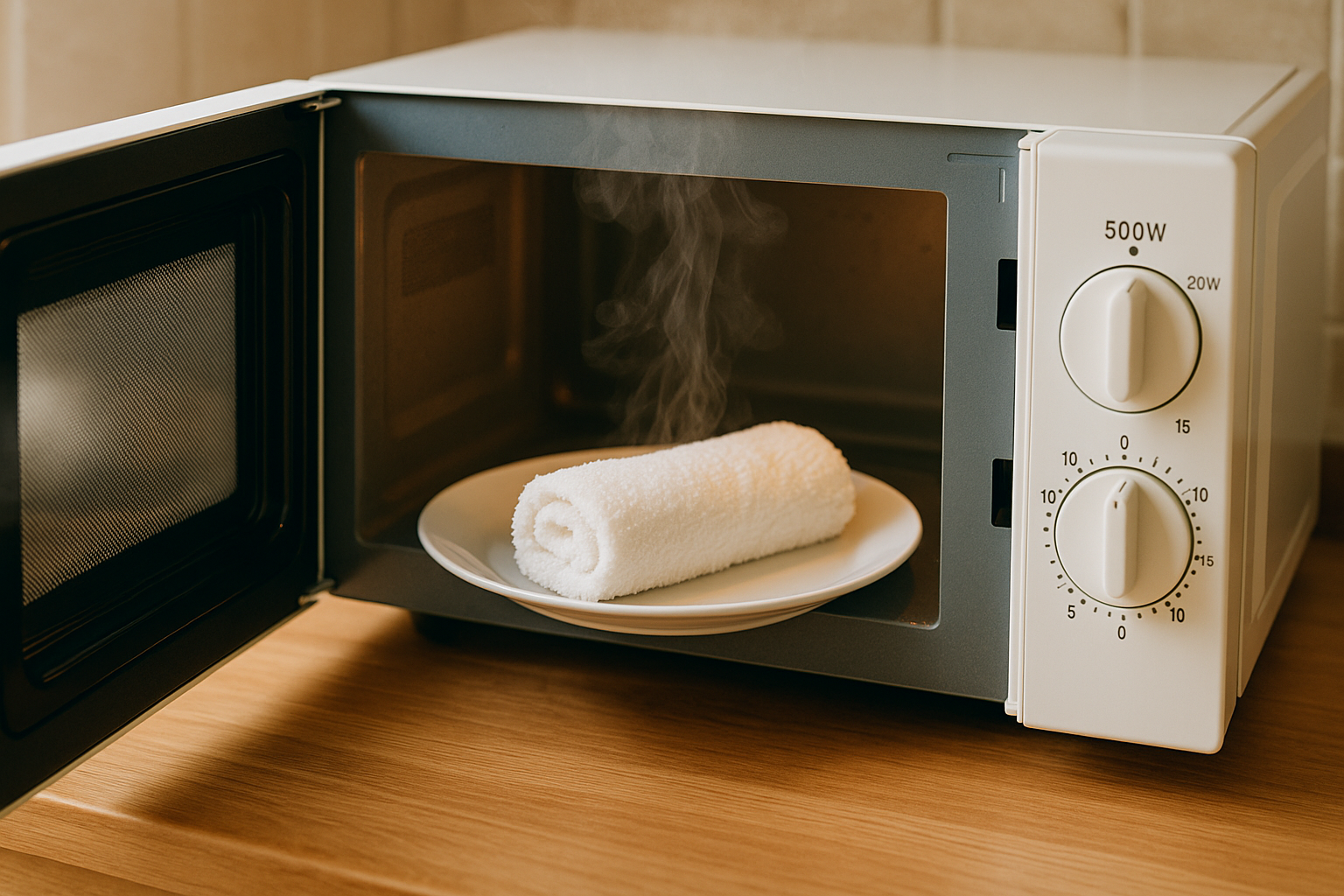 蒸しタオルの正しい安全な作り方【電子レンジ使用版】