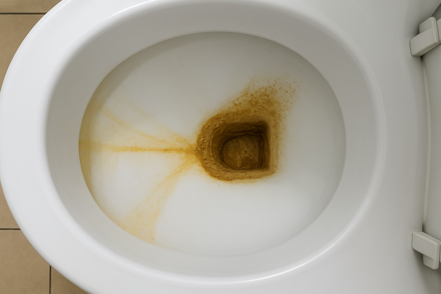 こうした条件がそろうと、ほんの数週間〜数ヶ月で尿石が蓄積していきます。最初は白い膜のような汚れですが、放置するとどんどん硬化し、ブラシではまったく歯が立たない状態にまで進行することもあります。